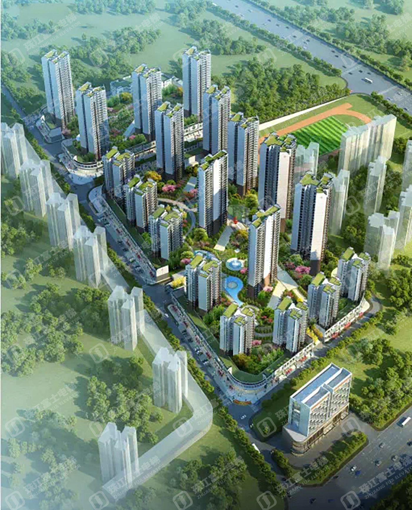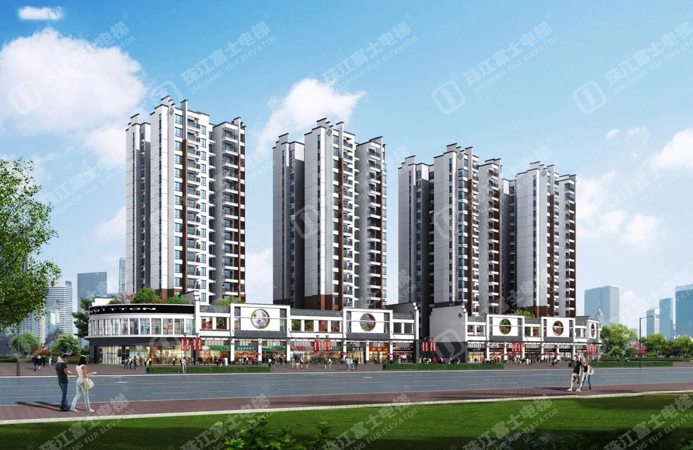 珠江富士電梯為該項(xiàng)目提供了10臺(tái)GSTK1050kg、1.75m/s的高速乘客。